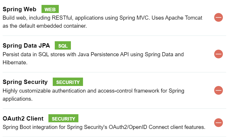 - OAuth2 Client : 구글, 카카오, 네이버 등 소셜로그인 기능을 위해 설정