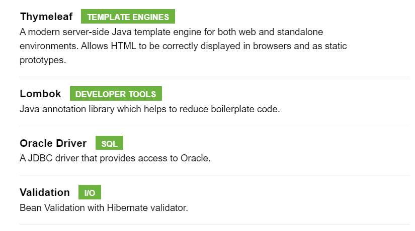 - Thymeleaf : 타임리프 템플릿 엔진 사용하여 웹 페이지 띄우려고 설정